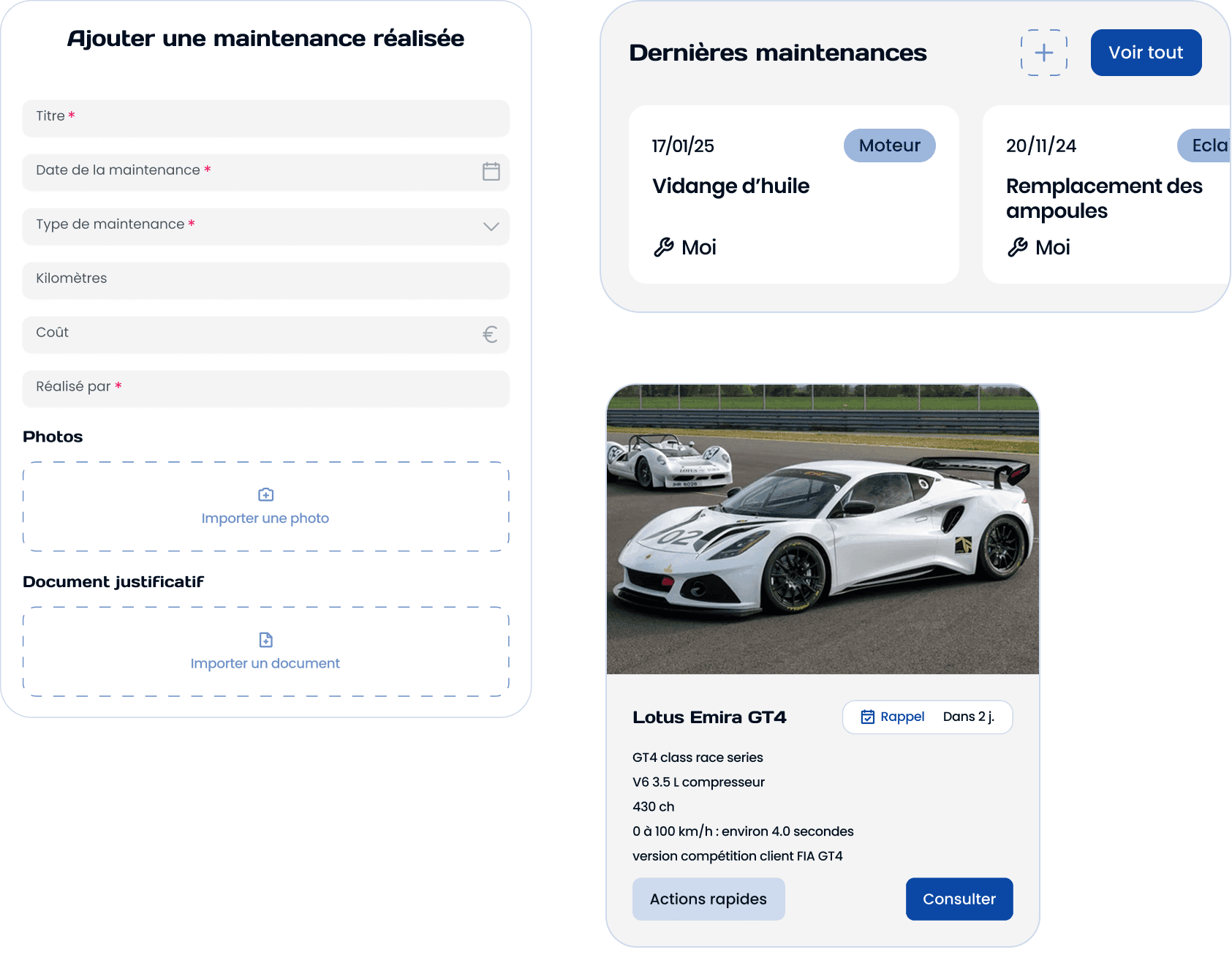 "Enfin une solution élégante et simple pour documenter l'histoire de mes véhicules. Incontournable."